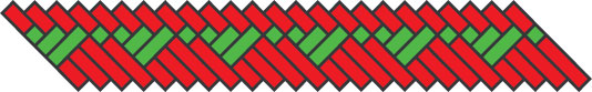 Figure 12 If along a decorated band each of the natural strands passes exactly once over a set of coloured strands, the decorated strip may be called N-single. Figure 13 presents an example of a N-single strip pattern.