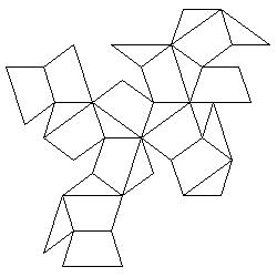 3. In the first type of problem, a random net of the solid is given. The task is to colour the net so that the faces that belong to the same roof (or to the same face of the dodecahedron - the second type of problem), are coloured by the same colour.