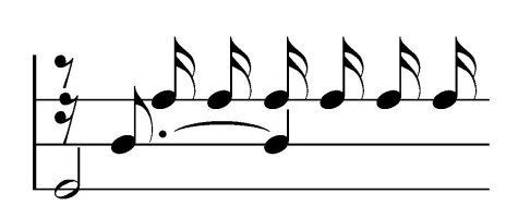 The theoretic study and the formalization of musical language which was dealt with in previous chapters represents the basics for the symmetry analysis of a musical piece. As an example we will present the symmetry analysis of J. S. Bach's Prelude no. 1 in C major from the Well-tempered Piano (Fig. 8.1). Figure 8.1 J.S. Bach, Prelude no. 1 in C major (Vinogradov and Krasovskaya, 1991). Its rhythmic structure is strictly regular and represents a symmetric linear translational structure based on the literal repetition of an asymmetric rhythmic model (Fig. 8.2). It satisfies global symmetry and, in the sense of the symmetry of friezes, it corresponds to the symmetry group p1 (Fig. 8.2b). (a) (b) Figure 8.2 An elementary asymmetric rhythmic model (a) and a symmetric diagram of a rhythmic structure (b). Out of 35 measures that make up this musical piece, the initial rhythmic element is literally repeated in each measure two times in the first 32 measures. The last three measures show the process of symmetrization - evolutive transformation which, by means of linking two initial asymmetric rhythmic models (measures 33, 34), leads to complete symmetrization (measure 35). Since there is a high correlation level between the symmetry of the rhythmic and melodic-harmonic structure, instead of constructing individual symmetry diagrams, the studied piece allows the construction of a common diagram. This diagram presents at the same time the symmetry of the rhythmic and melodic-harmonic structure and facilitates their simultaneous study (Fig. 8.3).