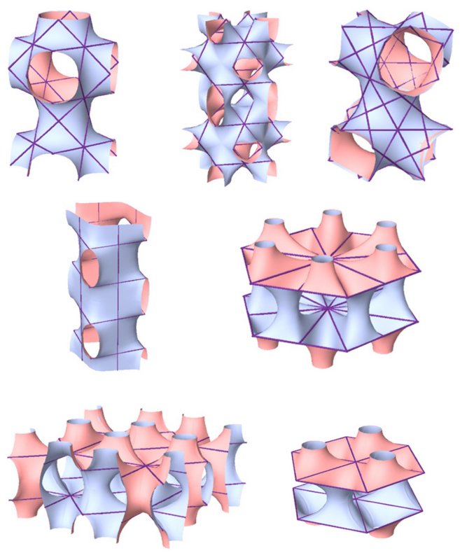 References: D.R.J. Chillingworth, Differential topology with a view to applications, Pitman Publishing London, San Francisco, Melbourne, 1976. Hilbert & Cohn-Vossen, Geometry and the imagination, Chelsea Publishing Company, New York, 1952. H.S.M. Coxeter, Regular Polytopes, Dover Publication Inc., New York, 1973 M. Burt, Spatial Arrangement and Polyhedra with Curved Surfaces and their Architectural Applications, Technion, Haifa, 1966. Peter Gay, The Crystalline State, Oliver & Boyd Edinburgh, 1972 M. Burt and A. Korren, Periodic hyperbolic surfaces and subdivision of 3-space, Hyperspace, vol. 3, #3, Japan, Dec. 1994. A. Korren, Periodic