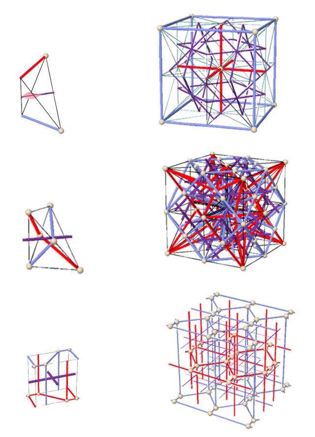 Conclusions Considering the apparent significance of the subject of dual lattice pairs and the subsequently related continuous Periodic Hyperbolic Surface-partitions, within the general theme of Space Subdivisions, it has never occupied a central position in a systematic and exhaustive research inquiry with these complementary spatial configurations. It should be noted that these configurations are the abstract idealized prototypes of all sponge structures, all labyrinth-like branching, infinite, enveloped, spaces and other natural phenomena, such as periodic filament configurations and continuous warped fields. They are an idealized geometric abstraction of continuous labyrinths, which shape the interiors of our modern mega-structures and our evolving urban down town environments. As of now it is clear that a general comprehensive notation system of space lattices is urgently required, as well as additional elaboration on the subject of "universal parameters" capable of capturing the nature and quality of the various ordered space lattices and related hyperbolic surfaces. It is clear also that any conspicuous