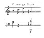 of the motto-theme: "O ew’ge Nacht" — Mozart has the tonic (bass) and the