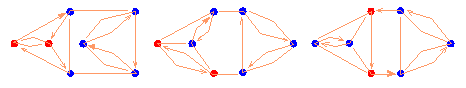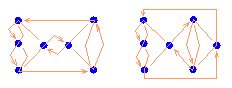 For example, for the oriented diagram of the knot 52, d(t)=t5-t3-5t. The writhe of D, denoted by w(D), is the sum of signs of all the crossing points in D, where the sign is +1 if the crossing point is "left", and -1 if it is "right". It is the visible property of every knot projection: |w(D)| is the type of the knot projection. There are some important properties of the integer polynomial invariant d(t)=cntn+... +c1t: According to the last three properties, in the set of all polynomials d(t) we may distinguish even functions (d(t)=d(-t)), containing only even degrees of t, corresponding to amphichiral knot projections, and odd functions (d(t)=-d(-t)), containing only odd degrees of t, which are invariant to a change of orientation of the knot projection. For example, to the knot 31 correspond odd projection polynomial t3+3t, and to the amphichiral knot 41 the even polynomial t4-2t2. Let us also notice that this polynomial projection invariant makes a distinction not only between non-isomorphic knot projections of prime knots (e.g. two projections of the knot 75, to which correspond, respectively, the polynomials t7+3t5-4t3-7t and t7+2t5+t4-4t3-7t, but also between non-isomorphic knot projections of composite knots (e.g. three non-isomorphic projections of 41#31, with their projection polynomials t7+t5-2t3+5t2-3t, t7+t4-3t3-2t2+3t, t7+t5+2t4-2t3+t2-3t, respectively). Rectangular square grid RG[2,2] is the minimal RG from which we could derive some nontrivial alternating knot (different from unknot) - the knot 31. From RG[3,2] we could obtain 74, 62, 31+#31+, 51, 52, 41 and 31, where different mirror-arrangements will give the same projection. Can we derive every knot projection from some RG? Which knot projections could be obtained from a particular RG? Which mirror-arrangements in some RG result in the same knot projection? Find the minimal RG for a given knot! Can we obtain non-isomorphic projections of some knot from a same RG? These and many other problems connected with mirror-curves represent an open field for research. |