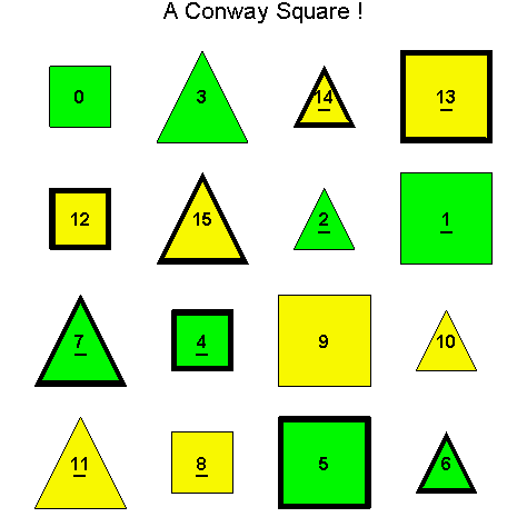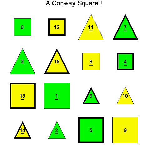 i.e. first determine which of these Conway squares are geometrically equivalent