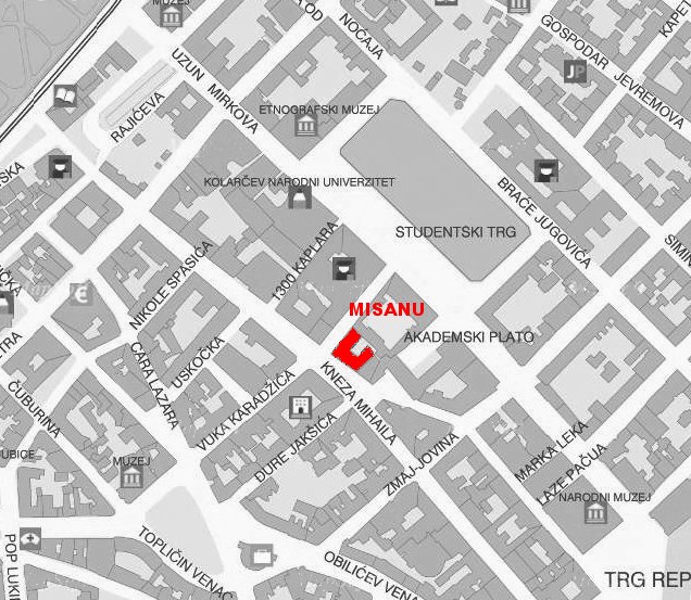 The Mathematical Institute is located on the third floor of the Serbian Academy of Sciences and Arts building, which is situated at 36 Kneza Mihaila Street in downtown Belgrade.