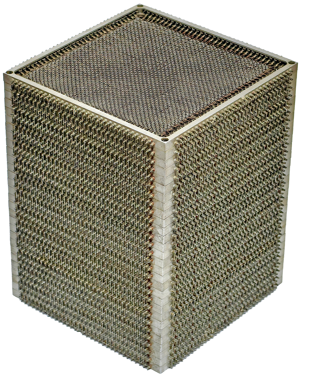 The RAM module with ferrite cores, developed in the early 1950s, was a revolutionary type of random-access memory (RAM) that transformed computing. Jay Forrester and his team at the Massachusetts Institute of Technology (MIT) created the first prototype in 1951 to overcome the limitations of earlier memory systems such as delay lines and vacuum tubes, which were slower and less reliable. These modules had a capacity of 4Kb or 8Kb and were a key component of early digital computers. The memory capacity was determined by counting the ring-shaped magnetic cores—toroids—where each toroid represented one bit. By counting the toroids along the length (x), width (y), and height (z), the capacity in bits was calculated as the product xyz. Dividing xyz by 8 provided the capacity in kilobytes (KB). Ferrite core technology was widely used during the 1950s and 1960s in scientific, industrial, and military systems, such as the SAGE air defense network. Its reliability and speed enabled real-time data processing, marking a significant step toward the development of modern computing systems and laying the foundation for today’s memory technologies.