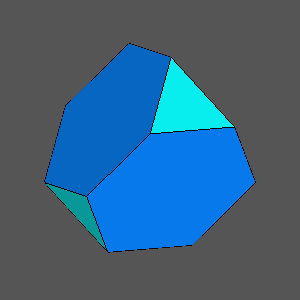 Solid with regular hexagonal faces of the {111} tetrahedron, resulting from the intersection of the truncated tetrahedron shown on the left with a cube when: