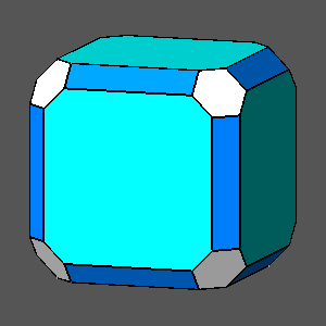• when d{111} /d{111} = 1, by decreasing the value of dcube from 1 to 2/3, the pseudo octahedron becomes a pseudo Archimedean truncated octahedron, consisting of square and regular hexagonal faces (a further decrease to 1/2 leads to a pseudo cuboctahedron, made of square and triangular equilateral faces)