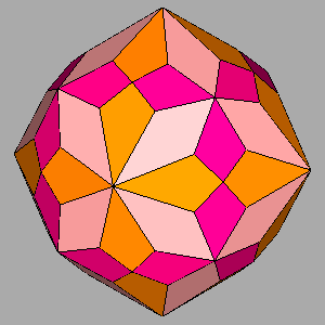 • a decrease of the value of dRD from 1 to (11+√2)/14 = 0.887 leads to a vertex-transitive polyhedron in which each vertex is shared by a square face of cube, an equilateral triangular face of octahedron and two rectangular faces of rhomb-dodecahedron: its dual is the deltoid-icositetrahedron {3√2-2 1 1} (whereas the rather similar Catalan deltoid-icositetrahedron {√2+1 1 1} is the dual of RCO)